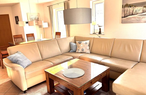 The thatched-roof semi-detached house in Ahornweg 7a (built in 2005) is located in the resort "Dünenresidenz Usedom" in Karlshagen directly behind the dunes in about 3 minutes walk from the beach. The DHH has a terrace, barbecue area with stone barbecue, bike shed and car parking space. - Long term vacationers are also welcome in the months of November to March! We would be happy to make you an offer with favorable special rates. - The island of Usedom and the nearby town of Wolgast await you with numerous recreational activities. It is possible to rent bicycles or boats, play mini-golf or tennis, bowl / bowl, have a massage, ride in Trassenheide or enjoy kitesurfing and surfing in Ückeritz. In Zinnowitz there is a swimming pool. You can also go jet skiing in Zinnowitz or go to the solarium. If you feel like playing golf, Balm on the backwaters is in good hands. Paragliders can z. Take off in Heringsdorf and bring kart racing fans in Peenemünde the tires to glow. For a quieter recreational activities, the climbing forest in Ückeritz / Neu Pudagla offers exciting trails through the treetops. A family petting zoo is located in Wolgast on the mainland. Some recreational opportunities are not open all year round, in some cases, a reservation is necessary.