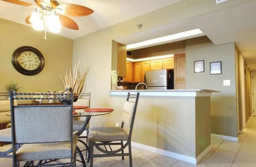 This condo sleeps 4 with a King bed in the master suite and also a queen sofa bed in the living room. It features a cozy great room with a seating and dining area, a comfortable Queen size Eazy bed for extra guests, a flat screen TV, cable and Wifi. There is a half bath off the living area. You will find the kitchen equipped with everything you need to cook a delicious meal. The master bedroom has a king sized bed, TV, and a spacious full bathroom with tub and shower combo. There are linens, books, games, movies and beach chairs and unbrella provided for your convenience. In the evenings, grill fresh seafood poolside or watch the sunset from the balcony.
