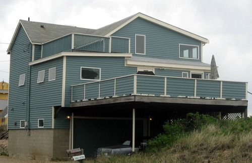 There are not many places on Plum Island where all the bedrooms, the common area and both sides of a big deck have a panoramic ocean view! The ocean beach is our back yard. House includes all dishes, utensils, sheets, bath and beach towels, beach chairs & umbrellas plus a gas grill, cooler and hammock on the deck. Just bring your bathing suit and food/drink. Off-street parking for 1-3 cars.
