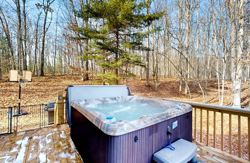This large cabin is perfect for your next Deep Creek Lake vacation. With an updated kitchen and spacious living area, this charming home has everything needed for a memorable stay. (The fireplace is not operational.) Gather around the outdoor firepit or take a dip in the private hot tub to stargaze after a long day of exploring. Enjoy a CARC Membership with access to a pool, hot tubs, and gym area.