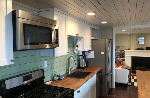 Nestled in the quiet community of Doe Bay lies a charming craftsman 2bd, 2ba cottage you can effortlessly retreat into. The tasteful updating is done with propane fireplace, new king sized REM bed with adjustable base in the master bedroom, one side of the bed has a softer mattress while the other side is firm-take your pick. All brand new living room furniture, tasteful decorating , cozy dining area with bench seats and surround windows and the spacious master bedroom has vaulted ceilings displaying vintage SE Asian oars. Andrew Gath design of Seattle helped us with the interior, it is warm. comfortable and classic. Enjoy dining or morning coffee on the New large south facing deck with beautiful water views. High speed internet and Rocu Direct TV in both bedrooms. Wake up to a sunrise over the Salish Sea. Your Island home is part of a small close knit "homestead" community-originally a fishing camp at the turn of the century. Their are 3 full time neighbors and 3 ocassional weekenders-thus are home is more of place to go to savor the peace of the Islands. If having a good ole fashioned whoopee party on the deck until midnight is your idea of a vacation (and who doesn't like that occasionally) than this location is probably not for you. Sound carries and this home has neighbors. I have mult bird feeders around the yard and when one gets quite and still, birds of all sorts will fly right up to you, along with our resident Doug Fir squirrels, Island deer and raccoon although we ask that you not feed the deer or raccoons. River Otters frequently swim by the house! We now ALLOW one small fur baby. The dog must be no greater than 15lbs. The dog is not allowed in the backyard garden and is not allowed to run freely in the neighborhood. The dog is not allowed on the furniture (unless it’s on the deck) or bed. Strongly recommend getting the extra insurance when bringing a dog.