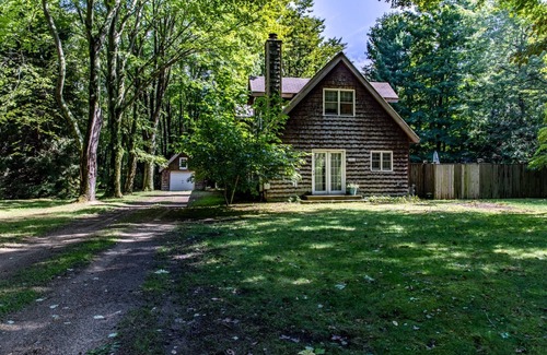 This dog-friendly house calls out relaxation! La Colita, which means 'little tail', is a fabulous Shaker style single-family home with three bedrooms and two and a half bathrooms and a private pool. The home is tucked away on a quiet street surrounded by trees in Harbert, MI.