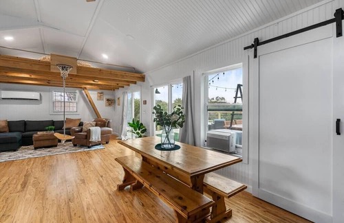 Welcome to our unique container home nestled in a serene setting, offering breathtaking views of Lake Weatherford. Perfectly positioned to provide a tranquil escape, this one-of-a-kind accommodation is designed to immerse you in the beauty of nature while enjoying the comforts of modern living. The open-plan layout seamlessly combines cozy living areas, a fully equipped kitchen, and a dining space, all adorned with large windows that frame stunning views of the waters below.