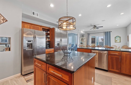 Sweeping ocean views, a large gourmet kitchen with glistening stainless-steel appliances, and ample eating space for both casual and formal dining are perfect for those who love to cook, as well as enjoy the cuisine and conversation! There is also a kitchenette to prepare lighter fare and snacks over a game of pool, cards, or a movie.