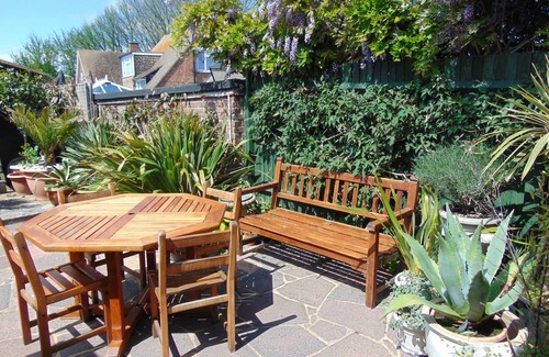 Dolphins is a detached bungalow 100 metres from the beach with off-road parking for 2 cars. We have 3 large bedrooms. ( The master bedroom is a king-size double or can be split into 2 singles the second bedroom is a medium double and the third bedroom is a twin, all the bedrooms have very comfortable mattresses and the rooms are fitted with blackout curtains) We have a modern, fully equipped kitchen and a family sized bathroom with a full-size bath and separate power shower There is a large sitting room with 2 new recliner leather sofas and a separate dining area for 6 adults, this leads to the conservatory, which looks out over a secure well-maintained back garden facing West, this is ideal for relaxing and sunbathing. Dolphins is well equipped with the latest technology, a modern Combi boiler for hot water and gas central heating, WI-FI, led lighting, TV, radio ,I pod and DVD player. The well-equipped kitchen has all Bosch appliances. We include clean cotton sheets and towels in our price. Gas and Electricity are also included in our price. Dolphins is deceptive, it looks compact from the road but there is plenty of space for 6 adults and we pride ourselves on providing a safe, clean and enjoyable base for your holiday. The tiled floors throughout the home are always disinfected and steam cleaned before arrival.
