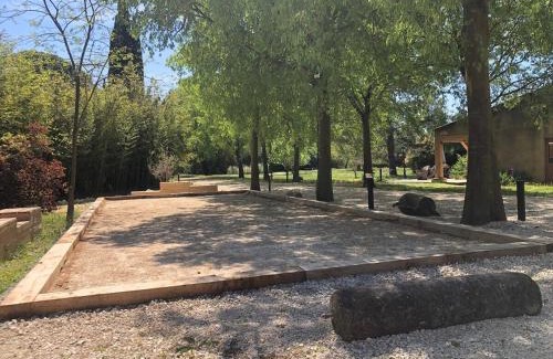Offering an outdoor swimming pool, Domaine de la Dragonette Mas from the 18th century in the heart of Provence- Lubéron-Avignon features accommodations in Entraigues-sur-la-Sorgue. This vacation home provides air-conditioned accommodations with a patio. On clear days, guests can head outside to enjoy the vacation home's outdoor fireplace or simply kick back and relax. With free Wifi, this 4-bedroom vacation home offers a flat-screen TV, a washing machine, and a fully equipped kitchen with a dishwasher and oven. Towels and bed linen are featured in the vacation home. There's also a seating area and a fireplace. Guests can make the most of the warm weather with the property's barbecue facilities. Guests can also relax on the sun terrace. Avignon Central Station is 8.2 miles from the vacation home, while Papal Palace is 8.6 miles away.