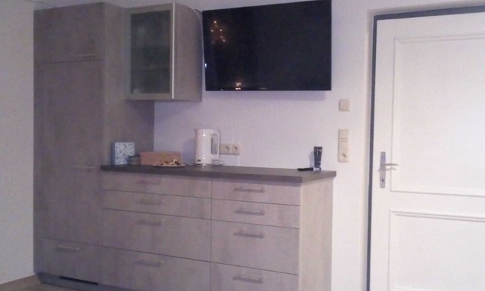 Our comfort room has its own modern shower room with toilet. A balcony with chairs and table is accessible via the corridor. The breakfast room has a fridge and an electric kettle.
