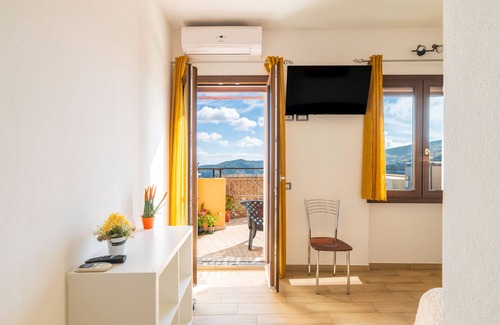 Double room with private bathroom, ideal for accommodating up to 2 people. The room is equipped with air conditioning, TV, and offers a panoramic terrace where you can enjoy a splendid view of the mountains and the sea. Breakfast is included in your stay. The environment is welcoming and designed to ensure comfort and relaxation during your stay. Perfect for those seeking a quiet and scenic accommodation.