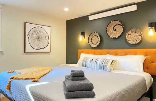 Your private guest suite is on the lower level of a newly remodled home in downtown, with a separate entrance via a fenced backyard. A short path and seven steps lead to your own door—keyless entry for easy check-in.
