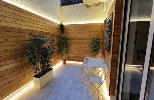 The apartment with a terrace and garden views features 1 bedroom, a living room, a flat-screen TV, an equipped kitchen with a dishwasher and an oven, and 1 bathroom with a walk-in shower. Towels and bed linen are featured in the apartment. The property has an outdoor dining area.