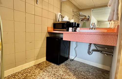 This unit measures roughly 300 square feet and offers a KING bed, desk, mini refrigerator, microwave, coffee maker and more!