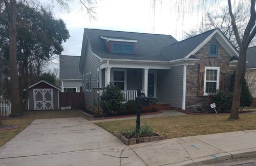 Single-family home with bonus room, steps from downtown Greenville. Perfect for bringing the family along for business trips or pleasure. Situated between both mountains and beach, Greenville's downtown has been acclaimed as one of the best in the US! Lots of room, with 3 bedrooms, and 2 full bathrooms. Both baths have tub/shower combination. Washer & dryer in home at no extra fee. Come stay with us for lots of room, close to the center of it all!!