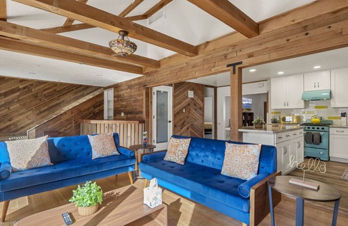 This 1945 built bungalow offers a new 2022 kitchen with shaker cabinets, granite counters, and period-style mint green and copper appliances. The living room boasts a 43" flat screen TV, fireplace, sofa futon and club chair. We have a small library of books. The bedroom offers a comfortable king size bed along with a 43" flat screen TV, and bedside lights that will also charge cell phones. The bathroom boasts a one piece toilet, corner shower, and shaker vanity.