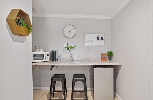 Come stay for a couples retreat, a friends trip, or when working away from home. Studio 1 features a luxurious memory foam King bed, a roomy bathroom, and all the necessities you’d need including high-speed WI-FI, a smart TV, a kitchenette with microwave, mini-fridge, coffee, tea and more. Relax with a cup of coffee in your room or unwind with a cold beer on the patio.