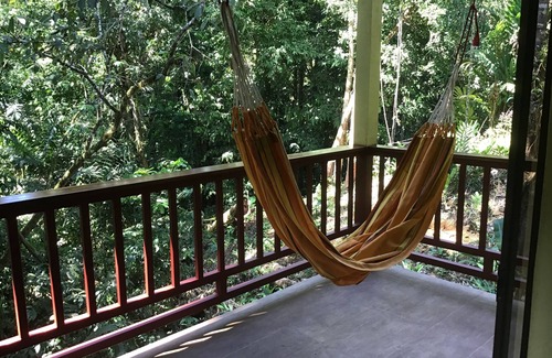 Mango Street Casona or the Big House is the newest addition to our property. The casona is tucked in between the trees and the garden. The two level house has a teak deck that offers a vantage point for observing the canopy. The guest house is secure in the gated and walled garden of the residential part of town. The casona is near our home to offer you support and security and still give you privacy. Tour operators are abundant, stores and restaurants are easily accessible by foot. Countless trails and beaches to explore on your own or with a guide. The garden is a birders delight. You can cook meals and prepare picnics in your own home away from home.The beach is less than a five minute walk from the house.