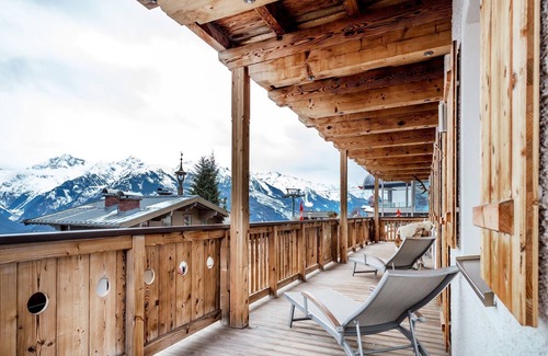 Here you will find three modern bedrooms with double box-spring beds, two with en-suite bathrooms, and an additional bathroom with a bathtub. The spacious southwest-facing balcony (40 m²) with loungers and garden furniture offers wonderful views. The open fireplace ensures cozy evenings after a day in the snow.