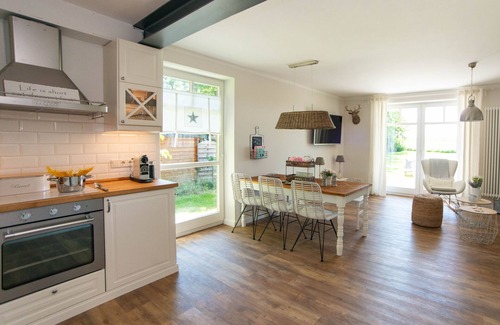 The open living / dining area on the ground floor and the versatile modern country kitchen invite you to a cozy get-together, to cook together, schnacken or a fun game night at the large dining table!