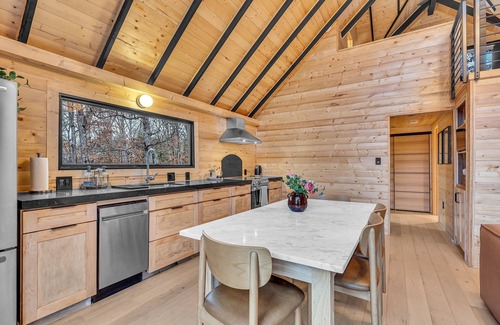 Dreamtime Hillside Cabin is a fully renovated 80s cabin redesigned with a Scandinavian design style in mind. It's located on a 5+ acre property surrounded by nature. It sits on a rolling hill featuring a hot tub on its expansive deck with a mountain view connecting to the Sleepy Creek Wildlife Management area, which spans 23,000 acres, a fire pit large enough to accommodate everyone in your stay.