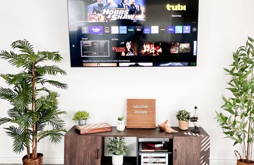 The main living room has a 65 inch Smart TV and each bedroom has a 55 inch Roku TV, a dresser and nightstands with power outlets on both sides of each bed.