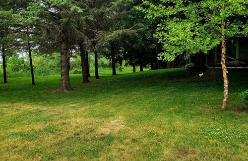 A long driveway on our 5 acre wooded property leads to a cozy 1400 square foot/1.5 bathroom house. Spend the day watching birds, deer, turkey, and other wildlife and enjoy relaxing evenings around a fire on the patio. Pets are welcome, but keep in mind, we have free range chickens. We are just outside of Berlin, with a 20 minute drive to EAA and Highway 41 access. We do not have wifi or cable TV. We have several TVs with streaming capability. 1 King size bed, 2 full size beds, and a futon are in the bedrooms. The living room has a couch and large recliner. There is a grill & fireplace on the patio. We will supply the charcoal and firewood.