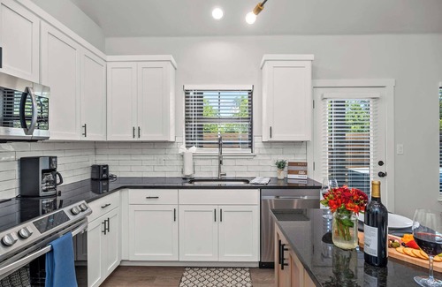 For longer stays or lighter packing, Eagle’s Hub offers the convenience of a washer and dryer. And after a day of wine tasting or discovering Fredericksburg’s charm, retreat to your private backyard oasis. Relax in the soothing hot tub or enjoy a quiet morning coffee or evening glass of wine on the cozy patio.