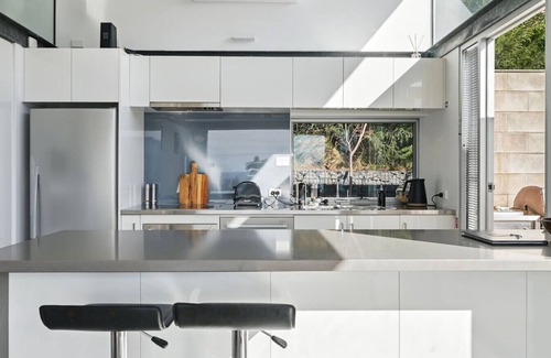 Unwind in the open-plan interior featuring a queen-sized bedroom, a luxurious bathroom with underfloor heating and walk-in shower, and a sun-soaked deck designed to capture the ever-changing seascape. Whether you`re cooking in the gourmet kitchen with premium appliances, enjoying a BBQ under the stars, or relaxing with a movie and a glass of wine, every detail is tailored for a serene, elevated experience.