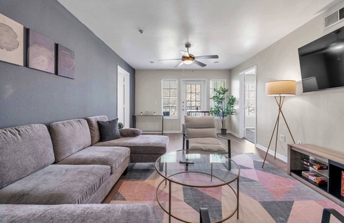 Dine together in the elegant dining area, or take your meals outdoors to the private balcony and savor the Texas sunshine. With stylish furnishings and contemporary decor throughout, this space exudes both comfort and sophistication.