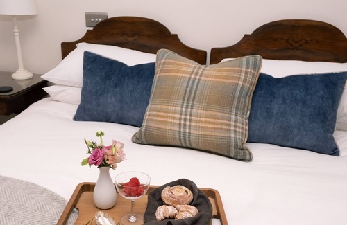The living areas in this studio-style property consist of an open-plan kitchen, dining area and sitting area with a microwave, fridge, kettle, toaster, and coffee machine, and a Smart TV. There's also twin beds (zip/link) and a bathroom with hairdryer. Outside there is a communal garden with lawn, furniture, barbecue, exclusive access to walled garden, and off-road parking. WiFi, fuel, power, bed linen and towels are all included in the price. You'll find a shop in 1.8 miles, a pub in 0.5 miles, and River Test in 0.2 miles. One well-behaved dog welcome. This is a smoke-free property. Egremont Russet is set rurally, offering the ideal base to a romantic break to Hampshire. Note: This is an adult only property unless the booking is for a wedding. Note: Continental breakfast hampers and meals can be pre-arranged at a fee. Note: Guests have access to on-site fishing, which must be pre-booked. Note: There is an on-site team room, open April to September, offering 20% discount for all guests. Note: Guests also have free access to Houghton Lodge Gardens, between 1st April and 30th September. Note: There is no oven or hob in the property. Note There is a communal freezer for ice.