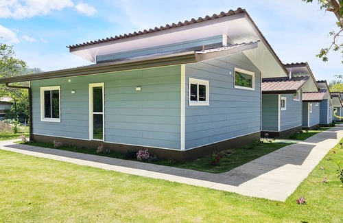 This unique Casita (45 sm/484 sf) has a style all its own. Located in a privileged spot in the town of Bajo Boquete you will enjoy a spectacular view of the mountains from your private terrace with hammock and you are only a 5 minute walk to downtown! Ground floor cabin, 1 king size bed, luxurious private bathroom, fully equipped kitchenette, living room, Smart TV/Netflix/Cable North, Central and South America, A/C, WiFi fiber optic (1000 Mbit).