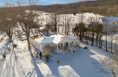 Tucked between the charming towns of Roxbury and Margaretville, this stylish Spanish courtyard-style home is ideal for families or friends. Explore nearby hiking trails, swim holes, festivals, farmers markets, and more. With 3 bedrooms, 2 bathrooms, a fully equipped kitchen, and cozy indoor/outdoor spaces, it’s a dream Catskills escape. Dog friendly with approval + fee.