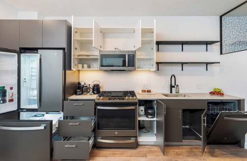• GE™ Energy Star® stainless-steel appliances and Moen™ matte black fixtures