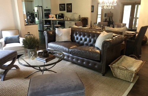 5-star private compound on 5+ secluded acres; swim and fish in the large private pond and creek meandering throughout the property; croquet, bocce, badminton and more; covered back deck overlooking the creek w/big screen tv, daybed, and gas firetable; separate game room w/pool table, games, and game table, which doubles as a separate work space when needed; jasmine covered pagoda by the creek; herb garden and chef's kitchen, fully equipped with gas stove, double ovens, and ice maker; webber gas grill and pizza oven; wood burning fire pit; luxurious linens; 10 minutes from downtown but a world away
