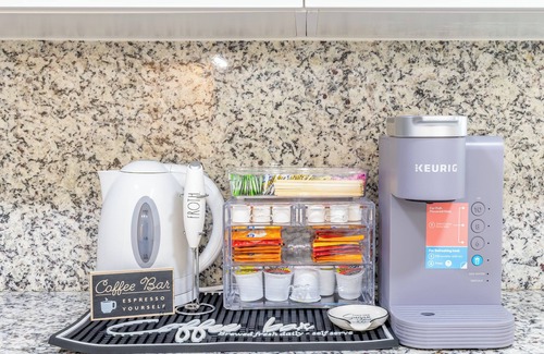 We will provide an initial supply of body wash, shampoo, and hand soap as well as coffee, sugar, dishwasher tablets, liquid dishwasher soap, kitchen towels, toilet paper, and garbage bags. Those items are intended as initial supply to only last the first 24 to 48 hours of each stay. You can always get more at the stores near the property.