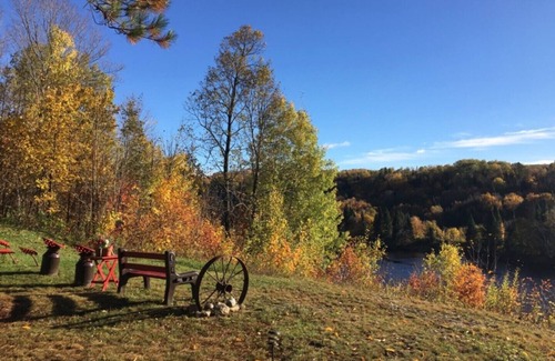 In the summer you will enjoy hiking the numerous trails that span nearly 100 acres, watching waterfowl in the pond, or canoeing, kayaking, or fishing the Rouge river! Eat outside in the screened-in gazebo and enjoy cooking some marshmallows or s'mores in the outdoor fireplace. Take a picnic and enjoy swimming at the beautiful Lac à la Loutre less than five minutes from the chalet or one of the many other fantastic lakes in the region.