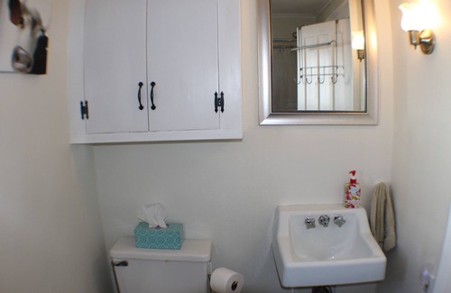 The bedroom holds a brand new Queen sized bed and there is another twin sized daybed in the living room area for an extra guest. Travelers with small children may request a pack and play and stroller for use to make walking around town just that much easier! The bathroom sports the original clawfoot tub great for showers of soaking after a long day! A separate dining area can be used for meals or as a desk if you must get some work done! The kitchen has a Keurig coffee maker, toaster, microwave, full sized refrigerator and stove, plates, pots and pans, of course!
