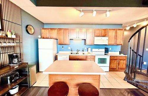 The loft area is wide open with 2 queen beds and 2 twin beds for your comfort. The KIDS only room that is Avengers themed has 2 twin beds and a Super Nintendo waiting for you to play.