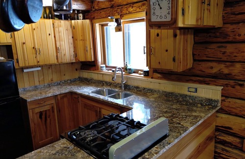 Welcome to Double Eagle Lodge located remotely in the heart of Michigan's pristine Upper Peninsula. Escape from the hustle and bustle of daily life with a trip into the great outdoors. No cellphone reception or Internet connection allows you to relax in the quiet of nature. This quaint log cabin is located on the shores of Long Lake. Though the lodge is 13 miles from the nearest electricity source, the solar panels and back up generator charge the battery bank to give the comforts of home while preserving the natural sounds of the surroundings. This log cabin sleeps six total, with four single beds in the loft and a queen size bed in the private bedroom downstairs. The cabin is equipped with indoor plumbing including a flush toilet and a shower, as well as a fully functioning kitchen. There is a separate building for the propane fired sauna and a second shower.