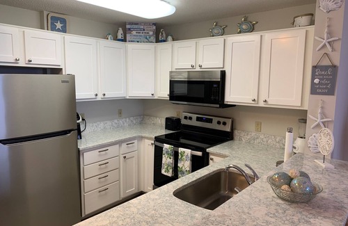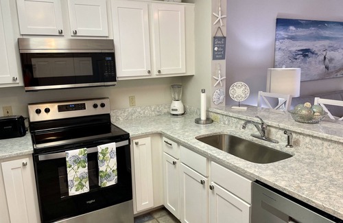 Dunes #405 is a one-bedroom unit with two full bathrooms that also includes a bunk bed alcove. In addition, there is a new sleeper sofa in the living allowing for up to 6 guests. There is a fully functional kitchen with all of the appliances, cookware and utensils needed to meet your cooking needs. The televisions in the living room and bedroom are smart TVs with a Roku device that includes YouTube TV, NetFlix, Hulu and DisneyPlus programming. There is also high-speed internet in the unit.