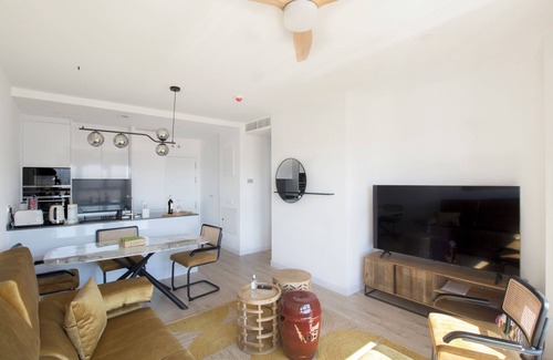 You can enjoy a dream vacation in the apartment with two bedrooms, two bathrooms, and a wonderful city view from the top. This new apartment has a fully equipped kitchen, swimming pool on the top and gym. There is a Malaga city view in the living room with a comfortable sofa and smart TV. The apartment also has 2 wireless internet connections and private parking inside the building. Is located in the heart of Malaga that you can reach all important points of the city by walking.