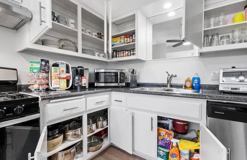 The Front house has 4 bedrooms, 2 baths, full stocked kitchen along with a 75in Smart TV