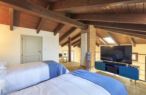 Completely restructured into a luxury home with top quality design furniture, the Villa Teresa is a hidden gem in the Piedmont vineyard hills providing a relaxing and gourmet vacation. Carefully preserving the original materials and highlighting the beautiful vaulted brick ceilings and terracotta tiles, this villa has been turned into a contemporary spacious home (420 m²) for 8 people in 4 bedrooms:
