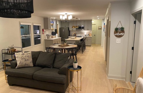 Welcome to Greenville! Located under 2 miles from both the heart of downtown and Prisma Memorial Hospital. Dog friendly with a fully fenced-in backyard just off the patio which includes a grill and eating area. Enjoy a stylish kitchen stocked with all the cooking wear & utensils you'll need. This beautifully updated home has a light & open floor plan perfect for gathering. Smart TV located in the living room, bar cart with accessories, and a cabinet filled with board games.