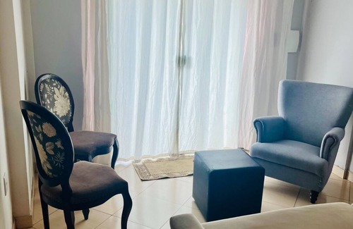 The kitchenette is equipped with a stovetop and a refrigerator, as well as an electric kettle, a microwave, and cookware. Bathroom amenities include a hair dryer, a bidet, and towels. And because there's access to laundry facilities, you can go a bit lighter on your packing. Other amenities at this 3-bedroom, 1.5-bathroom rental include bed sheets, an ironing board, and air conditioning.