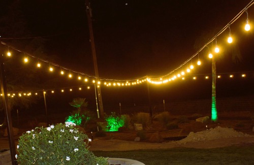 Bluetooth speakers throughout the backyard for you to play your favorite music. Over 500 dimmable LED Italian string lights to light up the night.