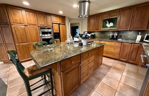 Single family home. Each bedroom has stunning views of the lake. Each bedroom has an attached bathroom for privacy. Guest Bedroom #1 with queen bed and full bath are on main floor. The Master Bedroom has a grand entry with double doors and boasts an luxerious marble bathroom with multifunctional toilet/bidet and walkin carrara marble shower with bench. The Master Bedroom with king bed provides 180 views of the lake with FIXED custom linen drapes (do not close). Master offers a high-end walkin California Closet. Guest Bedroom #2 with a queen bed has a Jack-n-Jill full bathroom that is shared with Guest Bedroom #3. Guest Bedroom #3 offers a quiet reading couch and two captains (twin) beds. The library/office offers a bar area and mini-fridge behind custom cut leaded glass built-ins. There is a small desk to complete work in the library and a couch that pulls out to a double. The Kitchen sports all high-end appliances. Kitchen Aid oven, microwave, dishwasher and GE profile refrigerator (which is a little hard to open due to the cabinet panels). There is a gas cooktop and overhead ventilation on the three-stools eat-at island in the kitchen. The kitchen offers a 72inch round glass top table (tipping caution to children) and six seats. The dining room offers incredible views of the lake and additional seating for six. The great room exudes comfort with it's vast choices of seating and gas fireplace. TVs with your streaming accounts available in the great room, kitchen, library/office, master bathroom, guest bedroom #2, and guest bedroom #3. The outside offers a couple of social spaces. The first patio provides seating for six. The enclosed patio offers a Solo firepit and seating for four. Please never leave fire unattended and keep away from fire at all times.