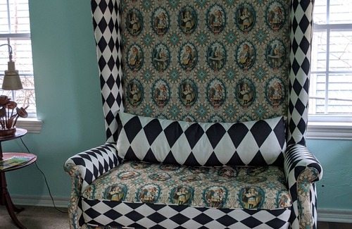 Take a trip down the rabbit hole in this Alice in wonderland inspired house. Meet woodland creatures and sit for tea. Unique artwork and a chair fit for the queen. Hidden secrets await. Why is a raven like a writing desk, do you know? This house is centrally located to downtown (bricktown) VA and OU children's hospital, zoo, Myriad Gardens, the civic center, art district, remington and much much more. Be on the interstate in 2 mins and start your adventure in Oklahoma City.
