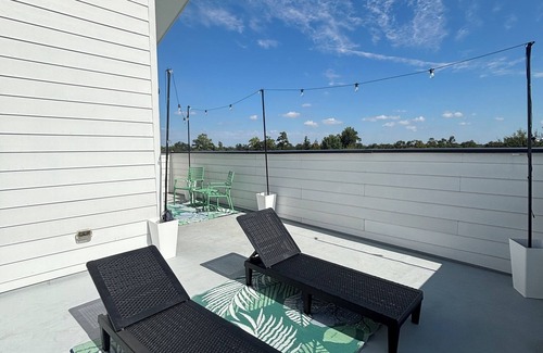 Modern European-style flat with the Light Rail right outside your front door. In minutes, ride directly to Downtown, the Medical Center, and NRG Stadium. Inside, enjoy soaring ceilings, split-level living, sleek finishes, stainless appliances, quartz counters, and hardwood floors. Private roof-top patio space adds charm. Perfect blend of convenience and style for your Houston stay.