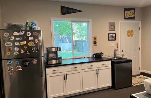 The ultimate house for your Notre Dame event! Everbreen has 4 beds, 2 full baths, a fantastic fenced back yard, & a garage party space with games and mini bar that serves out to the back yard! An easy, straight sidewalk strollfrom your front door to Notre Dame campus. This home is dripping with ND lore, and in true Irish fashion, there's plenty of space for a big family. Comfortably sleep and entertain 10+ for a ND game weekend orany occasion!