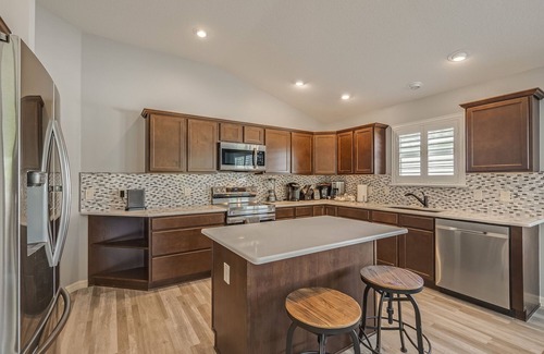 Well-decorated and maintained, the home has luxury vinyl flooring/tile, quartz countertops throughout the house, cordless window shutters throughout and remote controlled shades on sliding glass doors. Amenities include stainless steel appliances, Keurig coffee maker (and backup large pot coffee maker), Instant Pot, blender, mixer, baking utensils, and an ample supply of high quality dishes, silverware, glasses, wine glasses, and cookware. Other amenities include a BBQ grill, wi-fi, cable TV, and Smart TVs with voice remote in the living room and master bedroom. All linens are provided, including beach towels for days at the village pool or the beach and camp chairs. This home can also be supplied with a portable crib/playpen, high chair and infant swing for families with very young children if requested in advance (no additional charge). The washer and dryer are located in the garage.