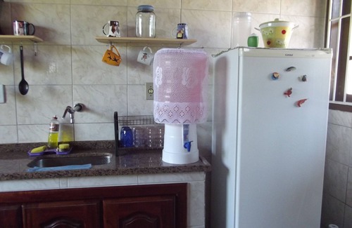 House with two floors, two furnished bedrooms (double bed, 4 single beds and two mattresses), living room with kitchen, 4 car garage, wooded yard (500 m²). It has gas stove, refrigerator, television, ceiling fan in the rooms and every comfort you deserve. Asphalted streets with buses at the door, shops, supermarkets, pizzeria, bakery and clean beach with few people. Open sea.